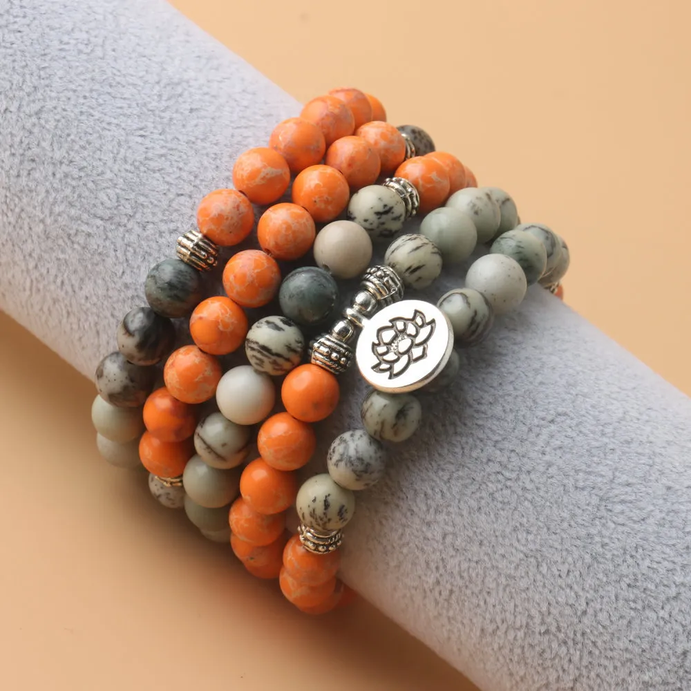 Natural Stone 108 PCs Rosary Bracelet Necklace Lotus Pendant: A Spiritual Accessory for Meditation and Mindfulness