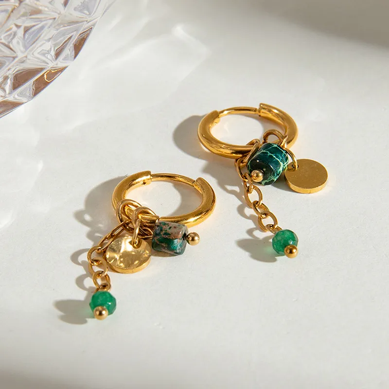 Natural Stone Ear Clip Light Luxury Advanced Titanium Steel Earrings