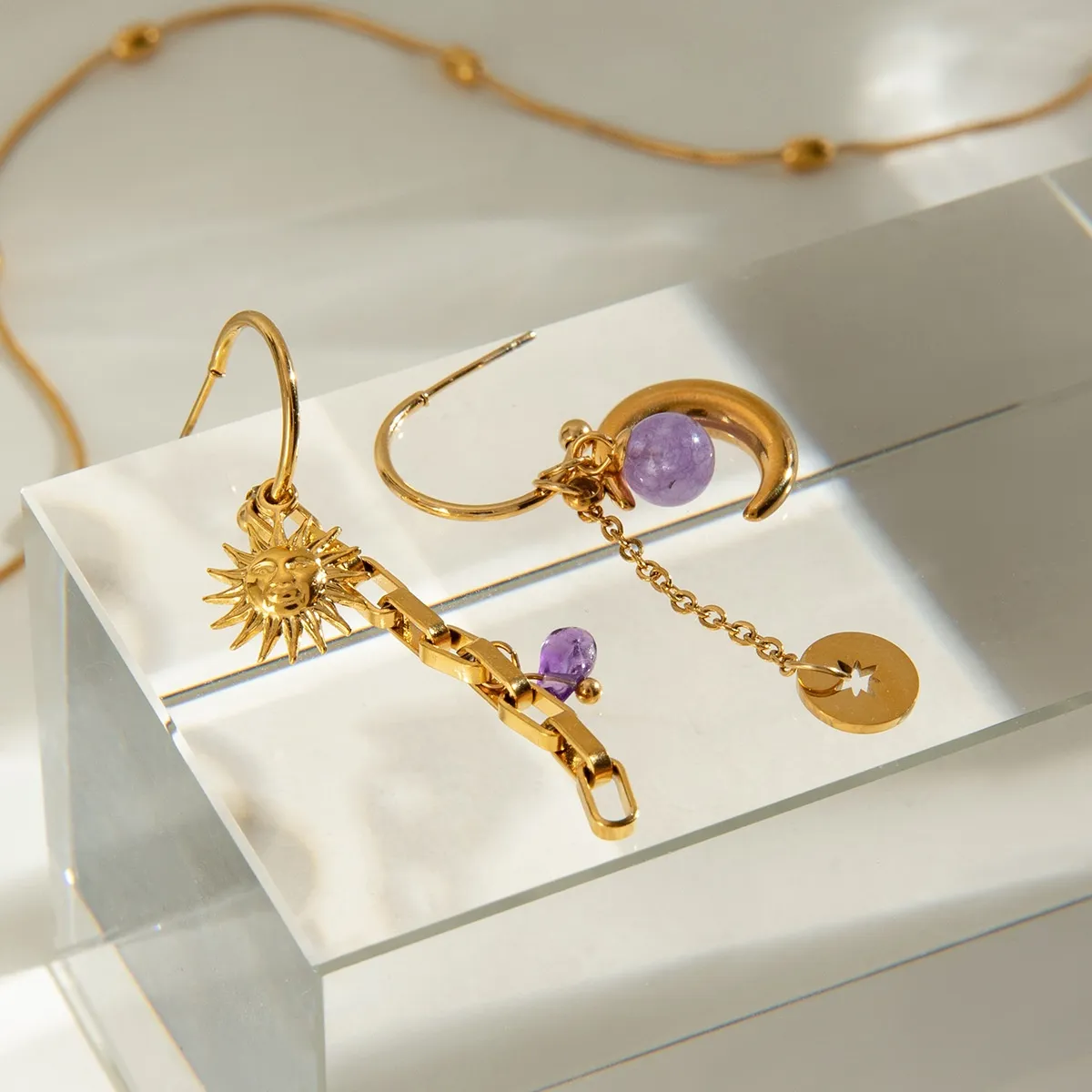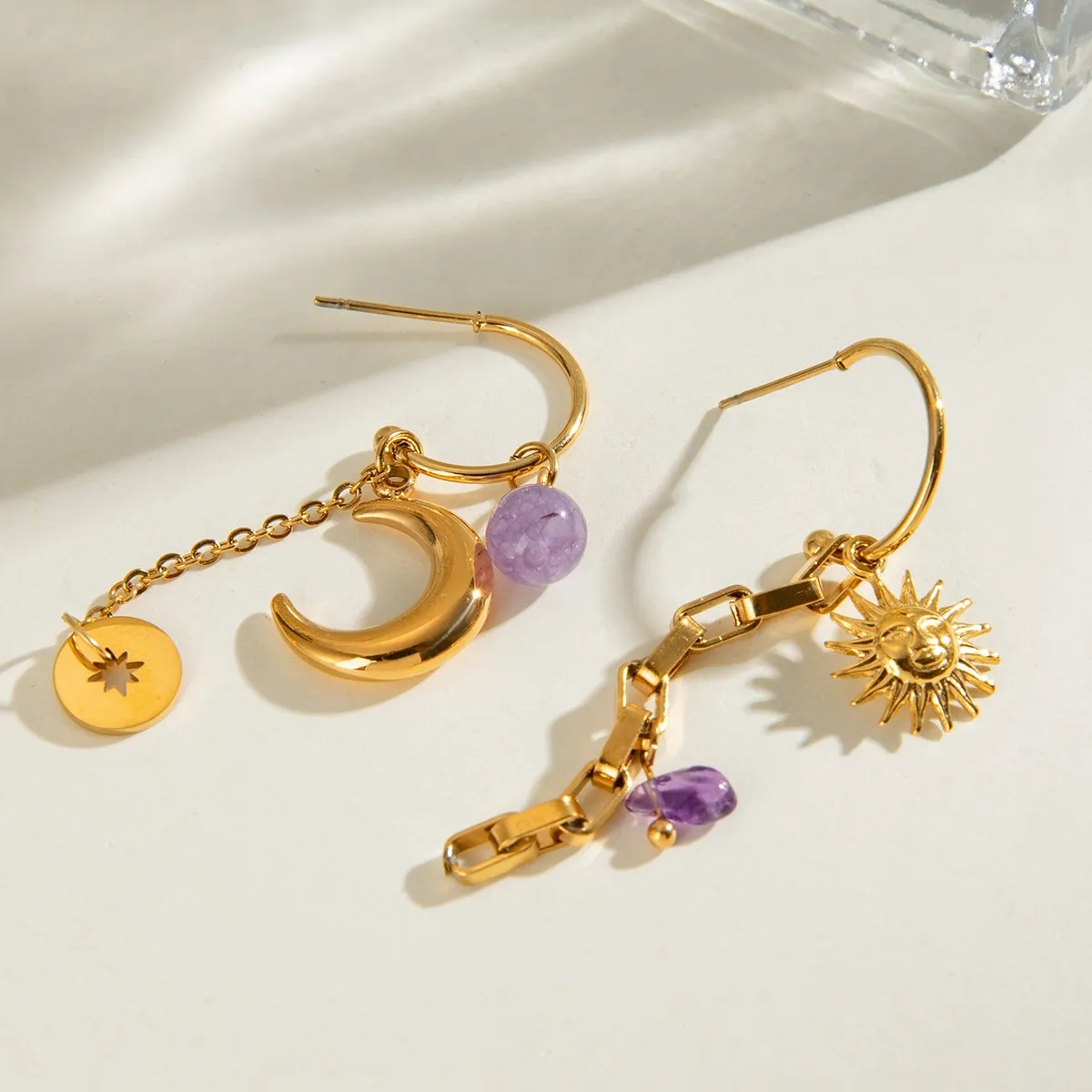Natural Stone Hammer Pattern Sun Moon Ear Clip