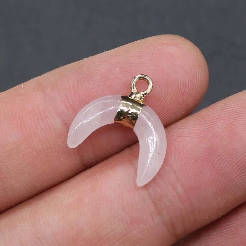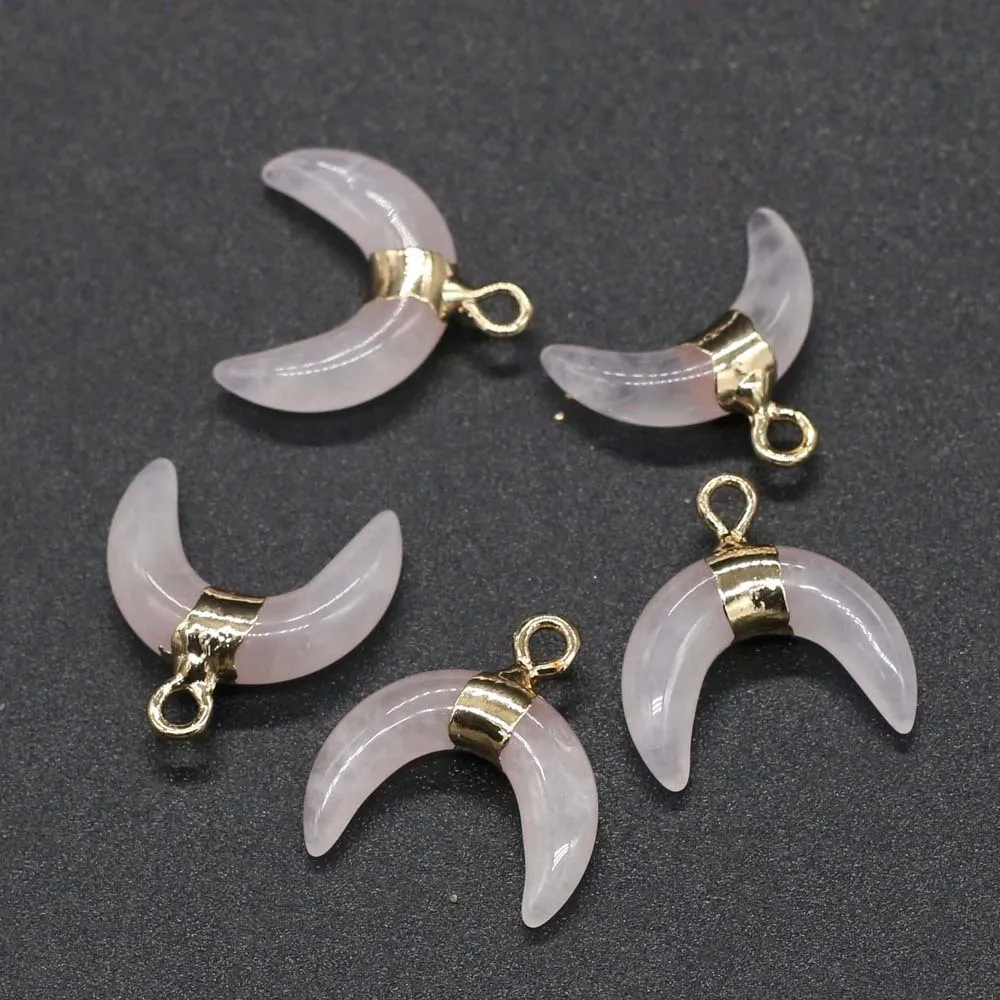Natural Stone Semi-Precious Moon Shape Rose Quartz Pendant: Embrace Love and Serenity