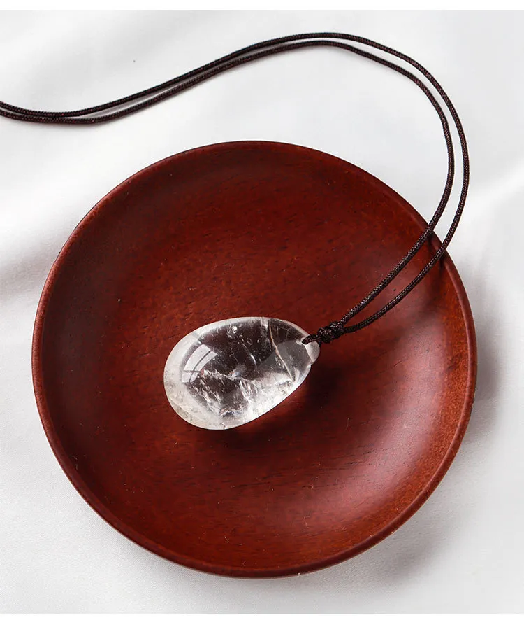 Each pendant is crafted from genuine natural white crystal, ensuring that no two pieces are exactly alike. The drop-shaped design enhances its aesthetic appeal while symbolizing purity and spiritual awakening.