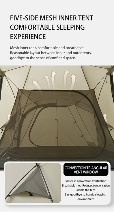 Spacious & Comfortable: The large hexagonal design offers plenty of space for family or group camping, with two
