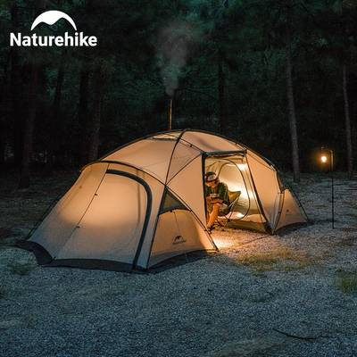 NATUREHIKE 4-Person Large Family Camping Tent – All-Season, Hexagonal 2-Bedroom Tent with Front Porch