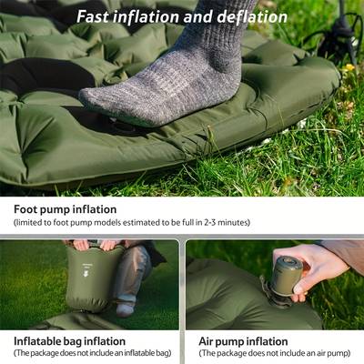 Built-in Pump: Quickly inflates the sleeping pad, saving you time and effort during setup, and can be easily deflated for