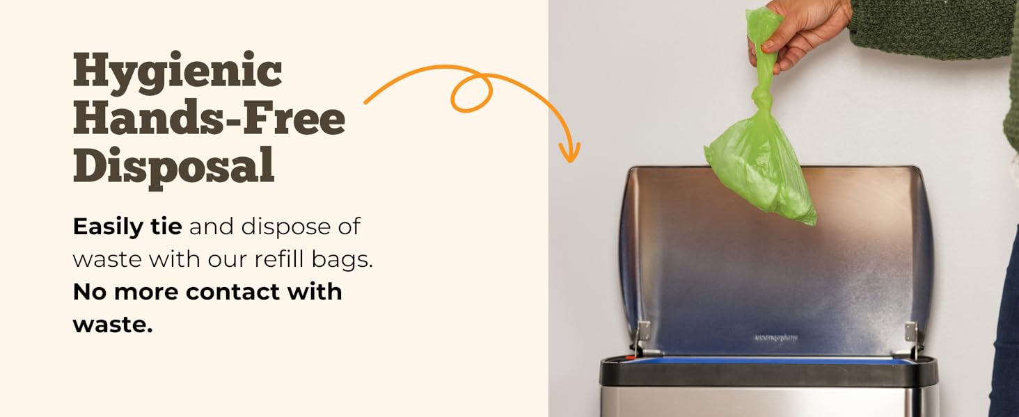 using the tie handles, secure them to seal in odors, and dispose of the bag appropriately.