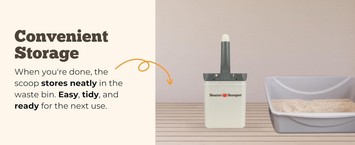 - IDEAL FOR SINGLE-CAT HOMES: Neater Scooper’s waste bin is the ideal size for a one-cat household where the litter box is cleaned daily. If you have more than one cat, we recommend you check out our Neater Scooper XL.