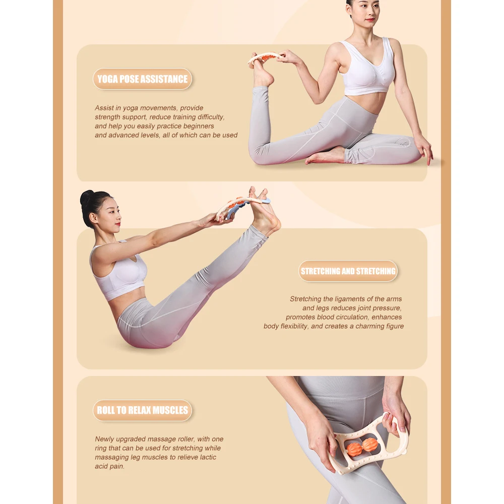 2. Ergonomic Design: One-piece arch design, fits the human body more comfortably, high strength and compression resistance, and the curved handle is easier to operate. Auxiliary stretching, shaping and beautifying the body, it can perform various yoga movements, and is convenient for people of all ages to use. The dual trigger point massager ball feels like a masseur's hand, allowing deep penetration into muscles to relax the body.