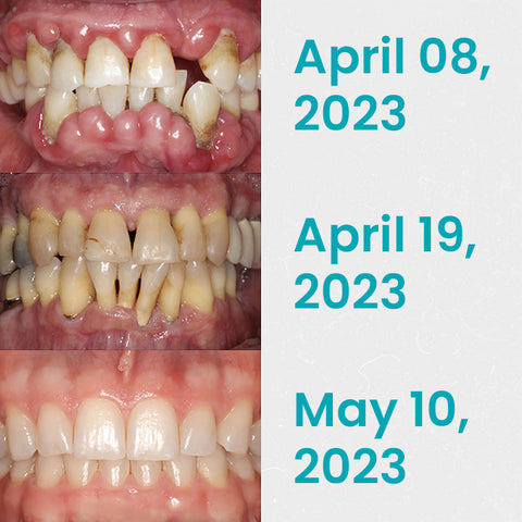 "My gums got worse as I got older because I didn't get any dental care. This prevented me from eating and talking well until my friend