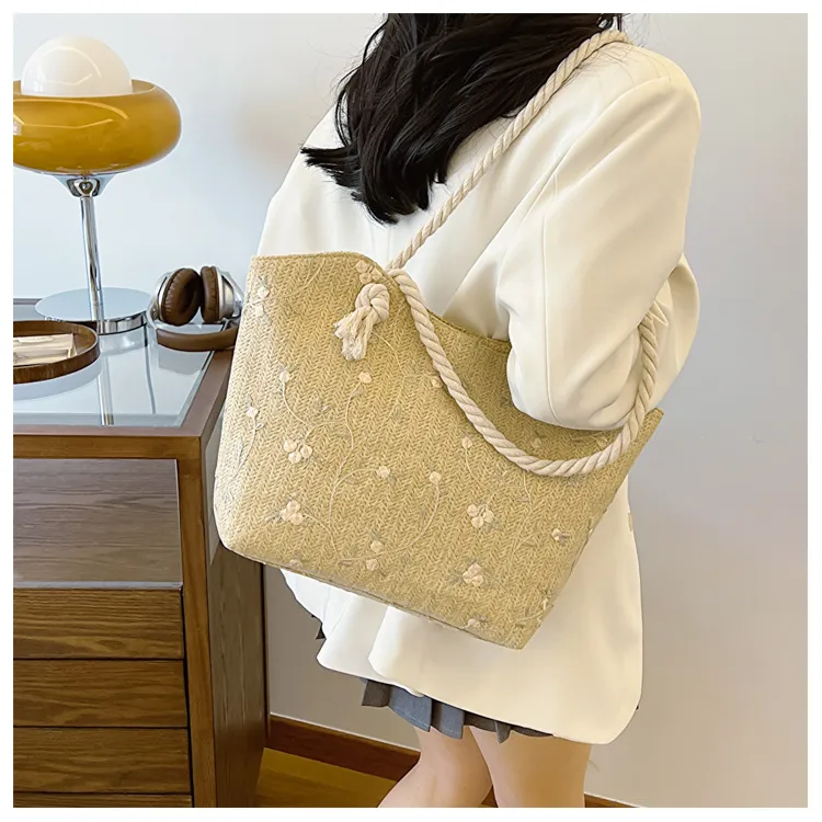 New And Simple Straw Bag Lace Bag Ins Straw Shoulder Bag Large Capacity Flower Fashion Women Handbag
