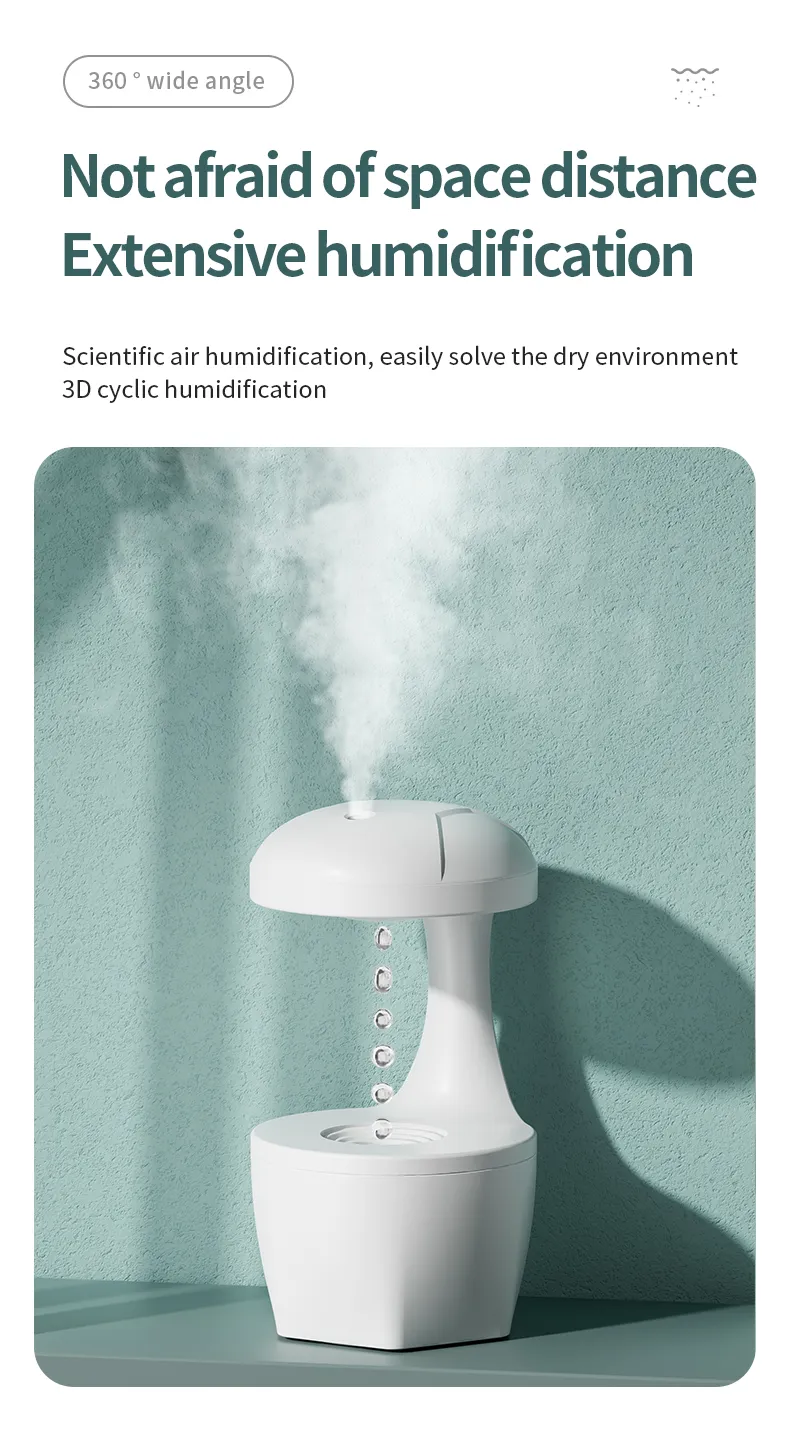 Introducing the latest in air humidification technology, the Portable 800ml Anti-Gravity USB Air Water Droplet Cool Mist Aromatherapy Humidifier is designed to enhance your bedroom environment. Combining functionality with a captivating design, this humidifier ensures optimal air quality and a soothing atmosphere.​