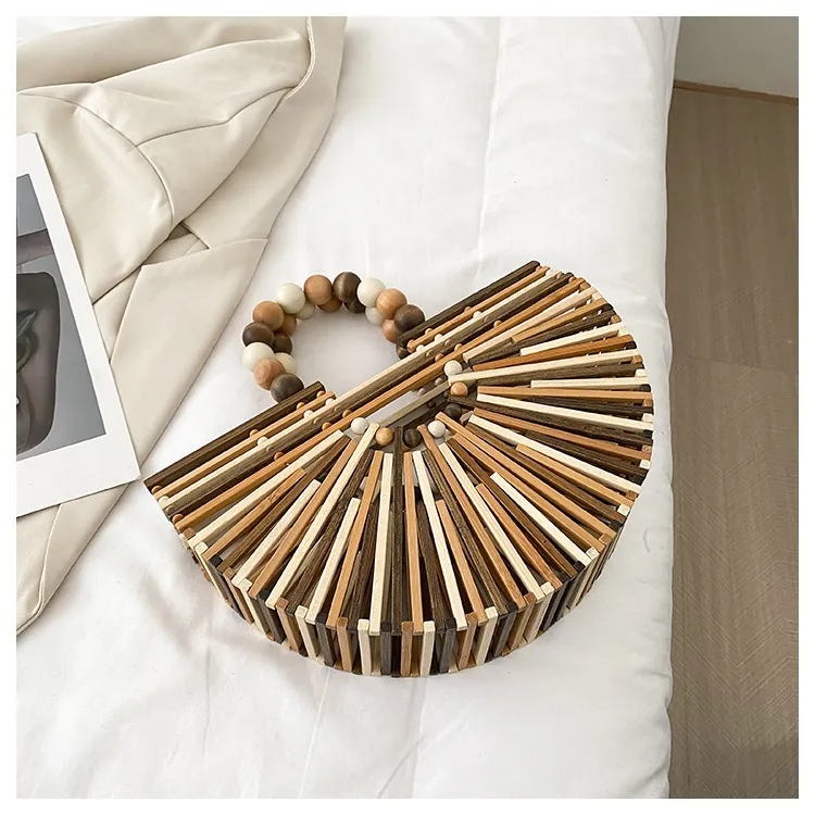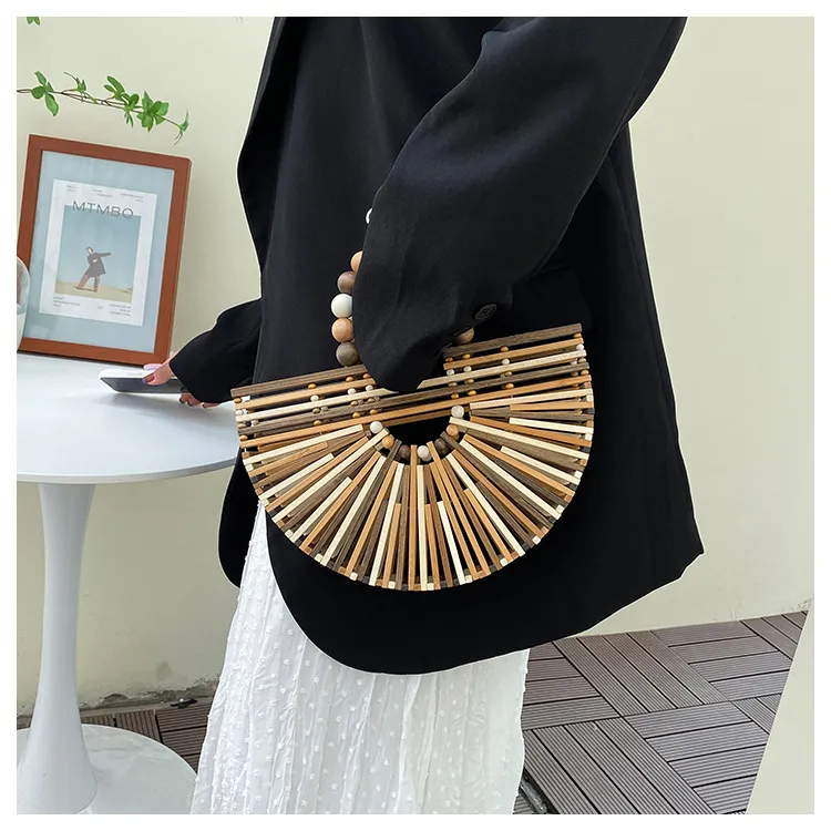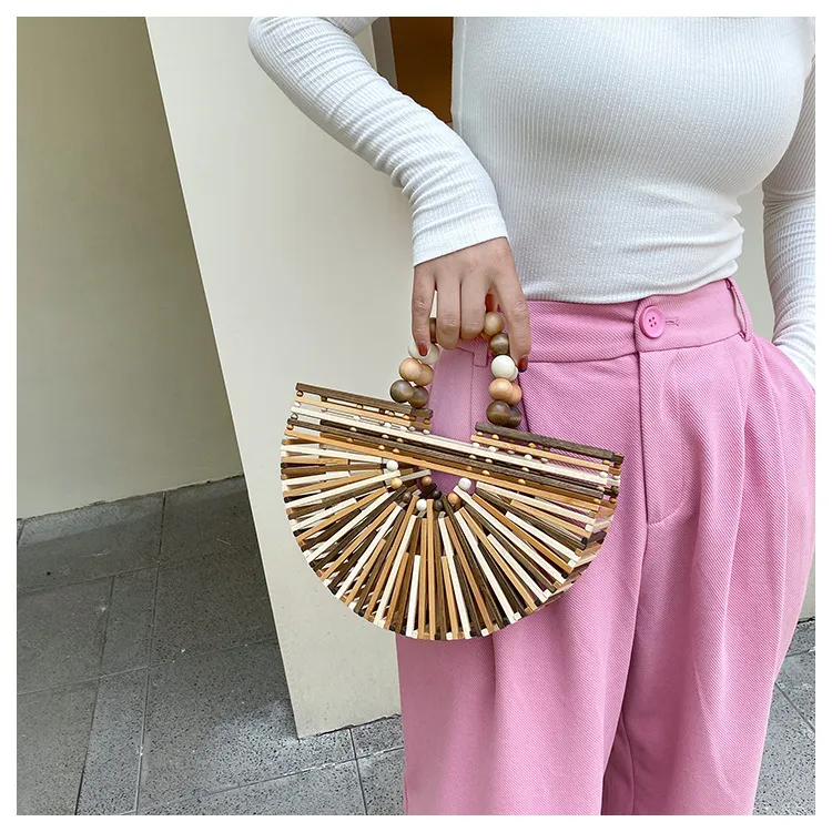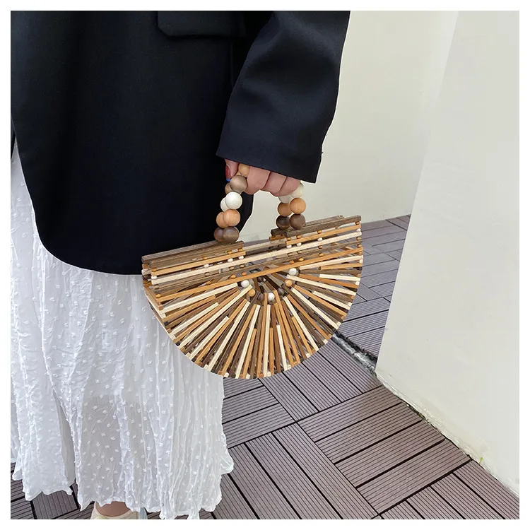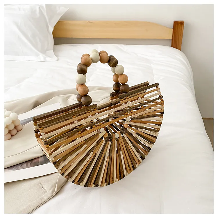 New Bamboo Woven Bag Women's Beaded Portable