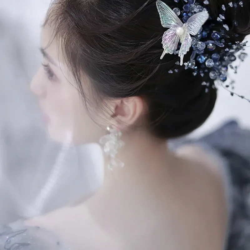 Color : Blue ocean hair band ear clip set Dazzling butterfly hair clip