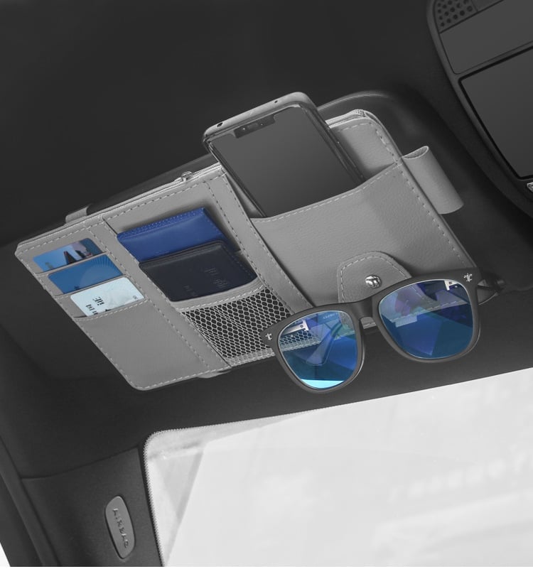 The visor bag Pocket can be securely attached to the sun visor without obstructing driver's view, and it offers easy and quick access to what you need