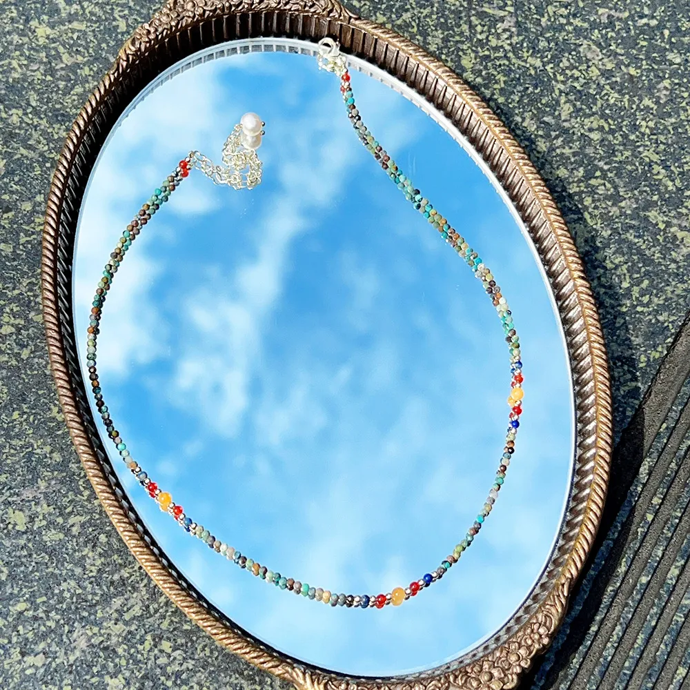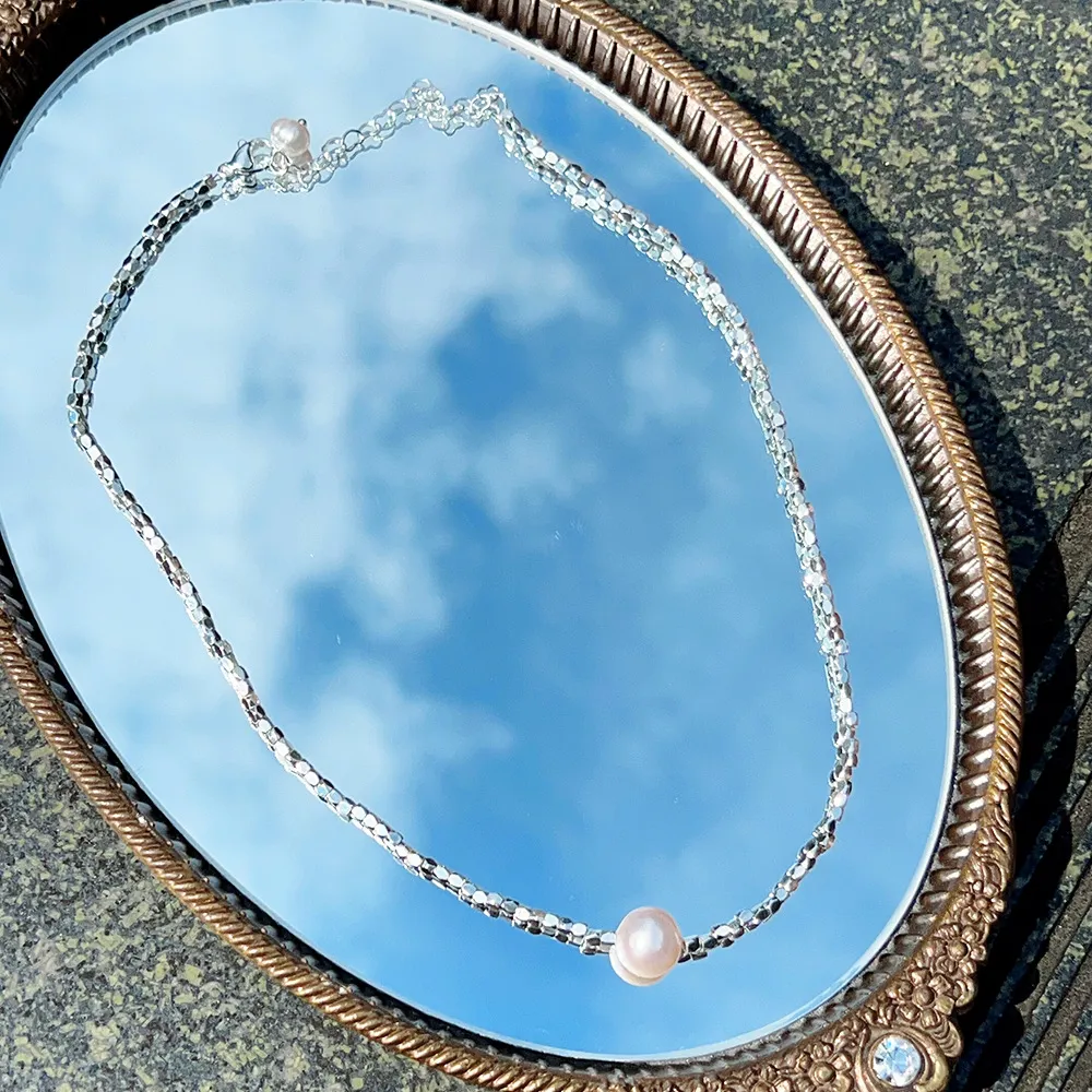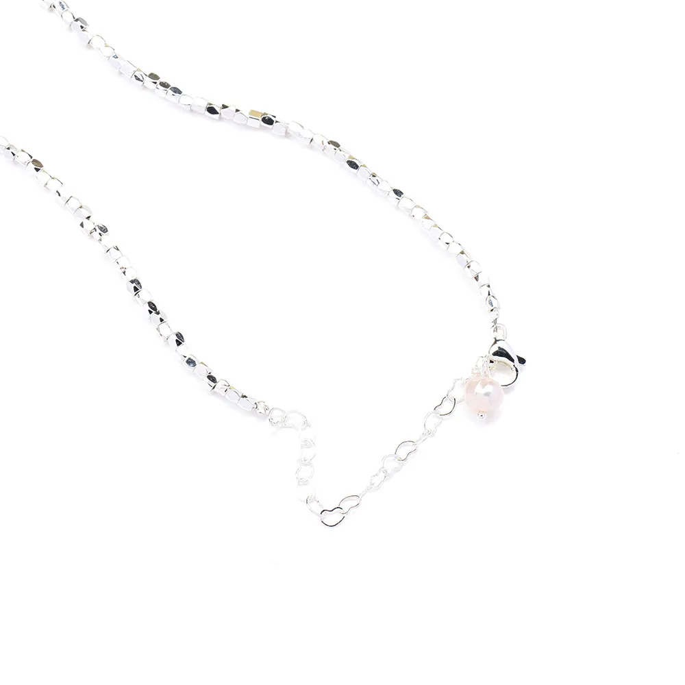 New Cute Simple Broken Silver Necklace Natural Pearl Pendant Colourful Beads Collarbone Chain Women's Accessories