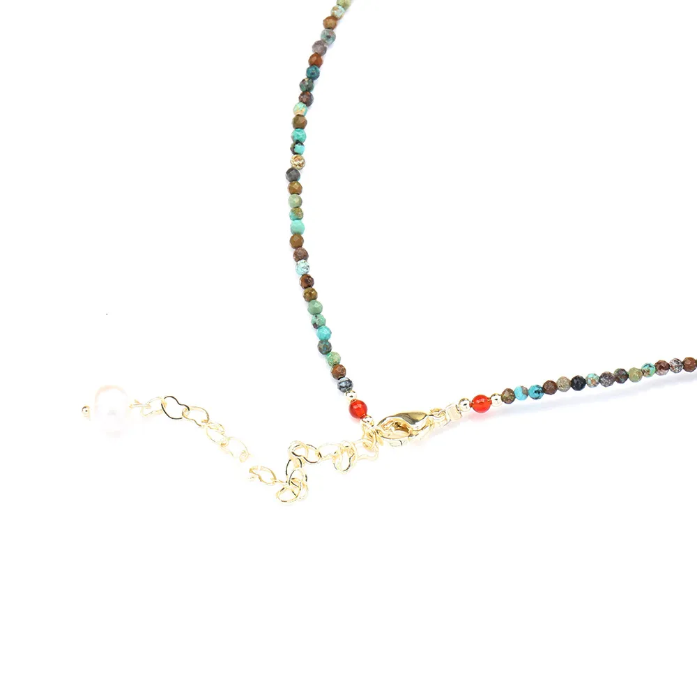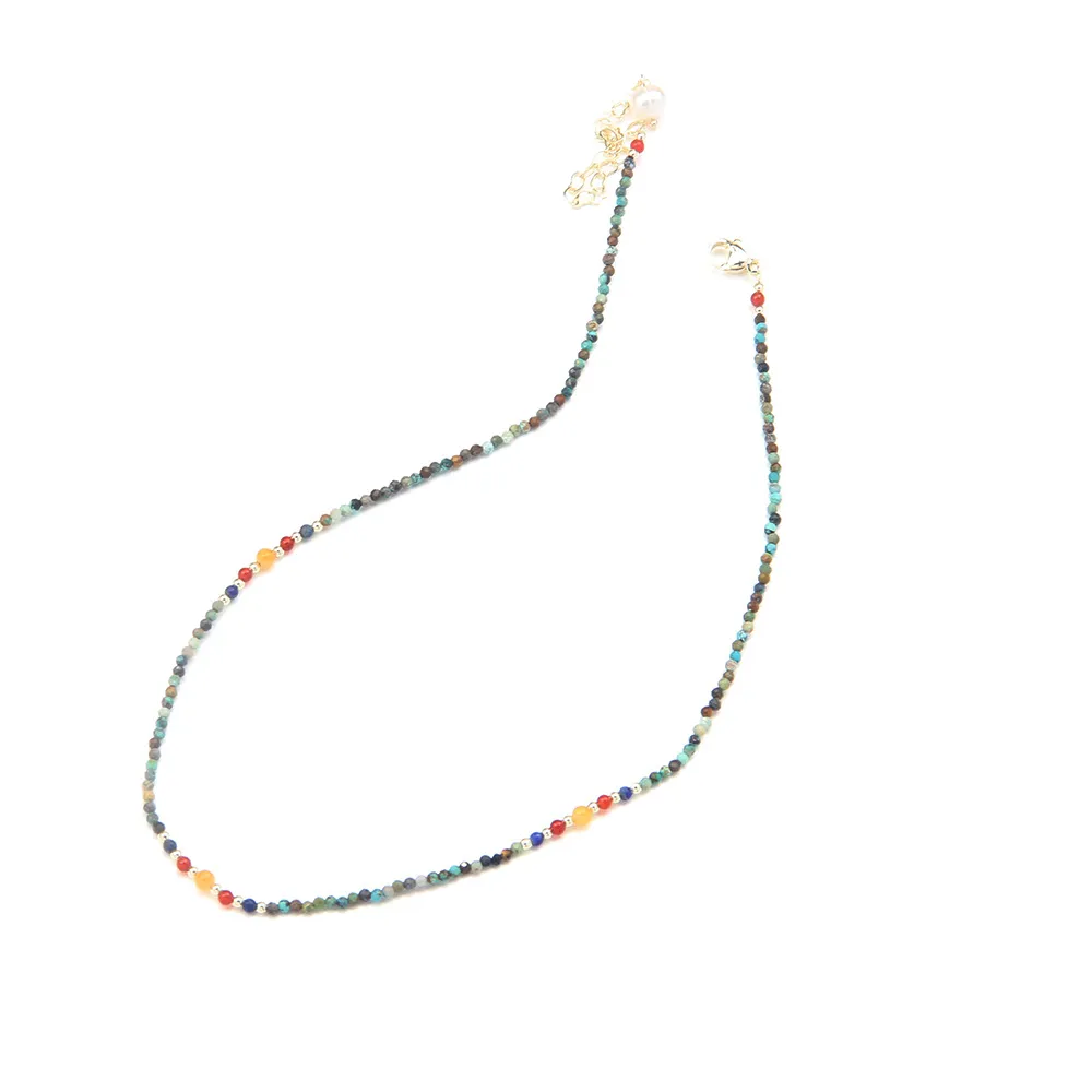 New Cute Simple Broken Silver Necklace – Natural Pearl Pendant with Colourful Beads Collarbone Chain
