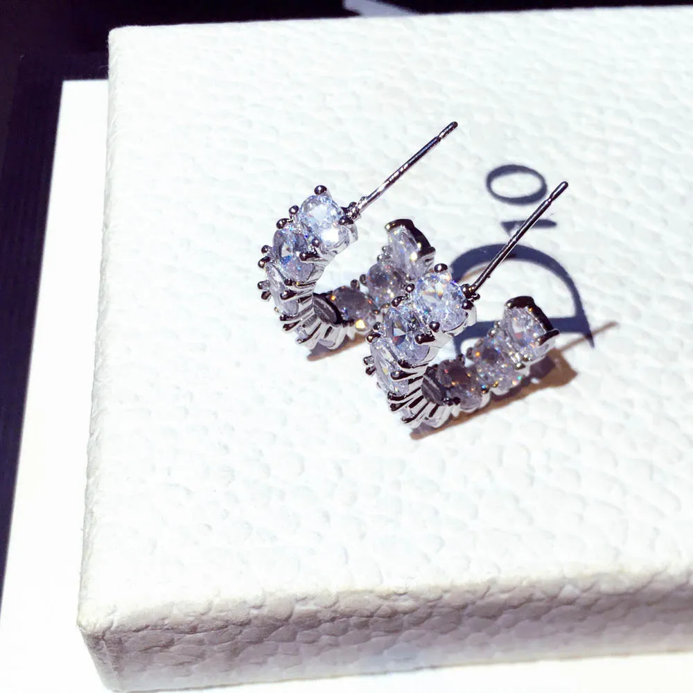 The zircon stones in these earrings are carefully set to highlight their natural beauty, creating a radiant shine that rivals diamonds. With their versatile design, these earrings can easily complement both formal evening wear and casual daytime outfits. Whether you're dressing up for a party, a wedding, or just want to add a bit of sparkle to your day, these earrings are the perfect choice.