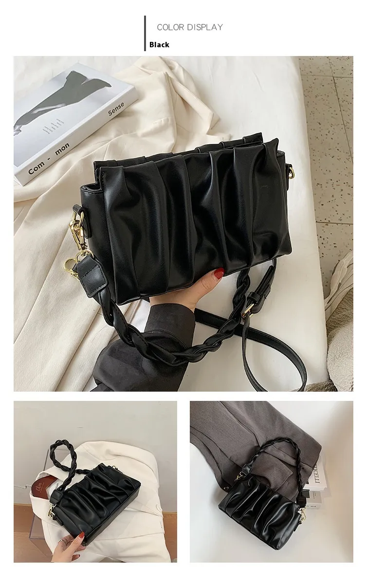 Made with premium materials, the New Fashionable Pleated Shoulder Crossbody Bag is designed for durability and comfort. The exterior is crafted from high-grade PU leather, offering a smooth finish that’s easy to clean and maintain. Inside, the soft lining protects your belongings while ensuring a lightweight feel for all-day comfort.