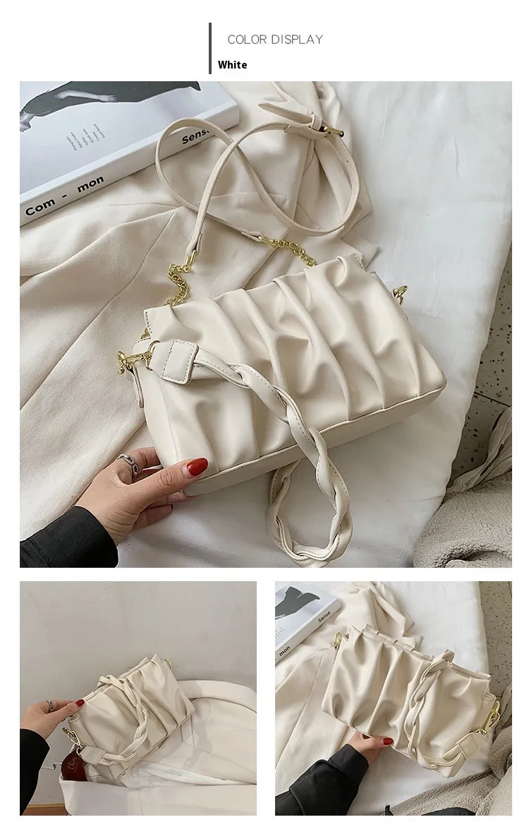 H1: New Fashionable All-Match Pleated Shoulder Crossbody Fashion Chain Small Square Bag