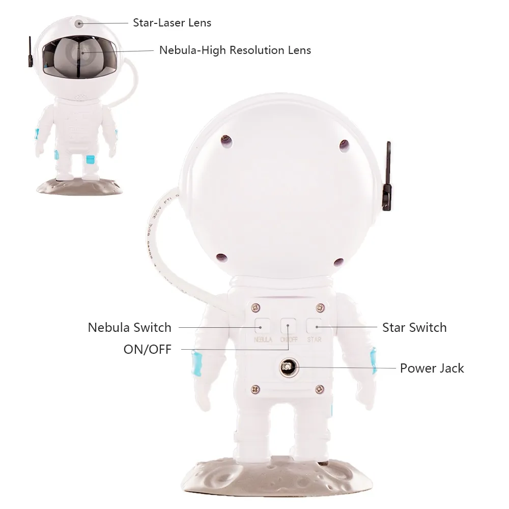 2.【Manual Switch, Remote Controller & Timer】: You have 2 ways to turn on Astronaut Light Projector: the back buttons & the remote