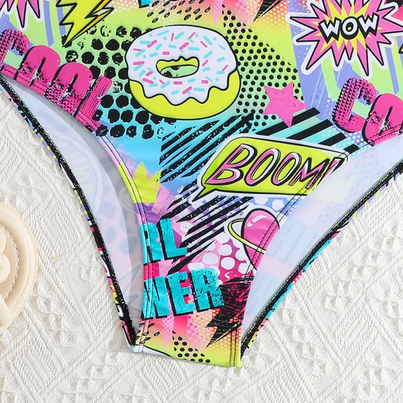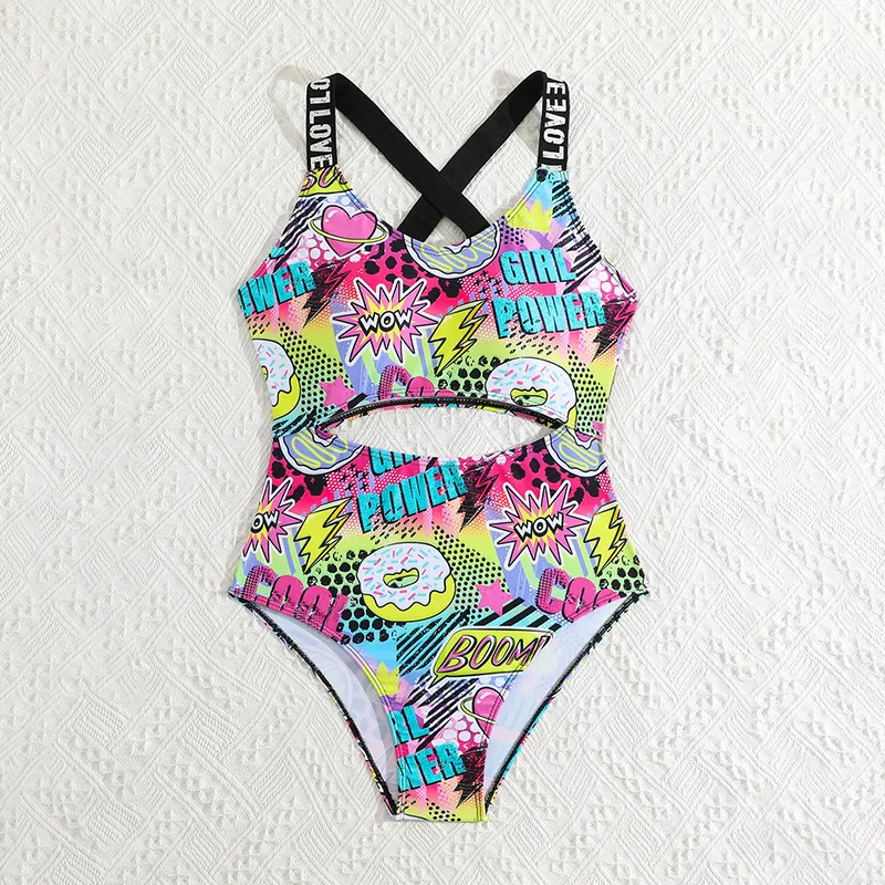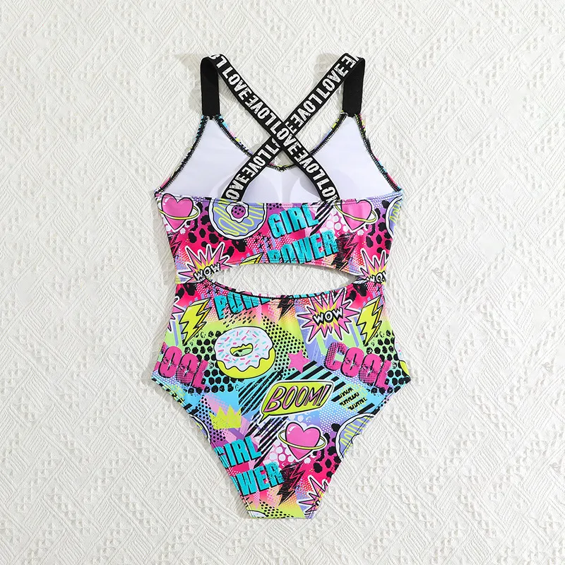 Adorable Cartoon Prints: The swimsuit features fun and colorful digital prints of cartoon characters, adding a playful and