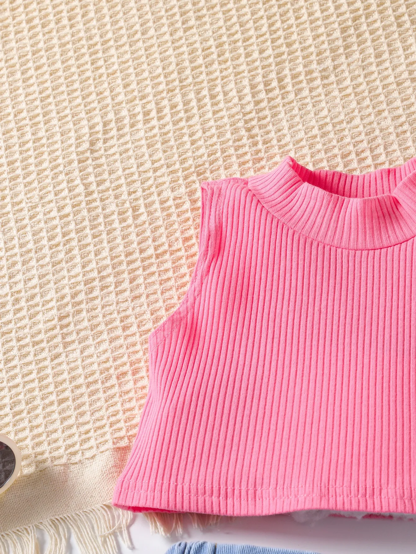 👧 New Girls’ Solid Color Sleeveless Vest – Stylish and Comfortable