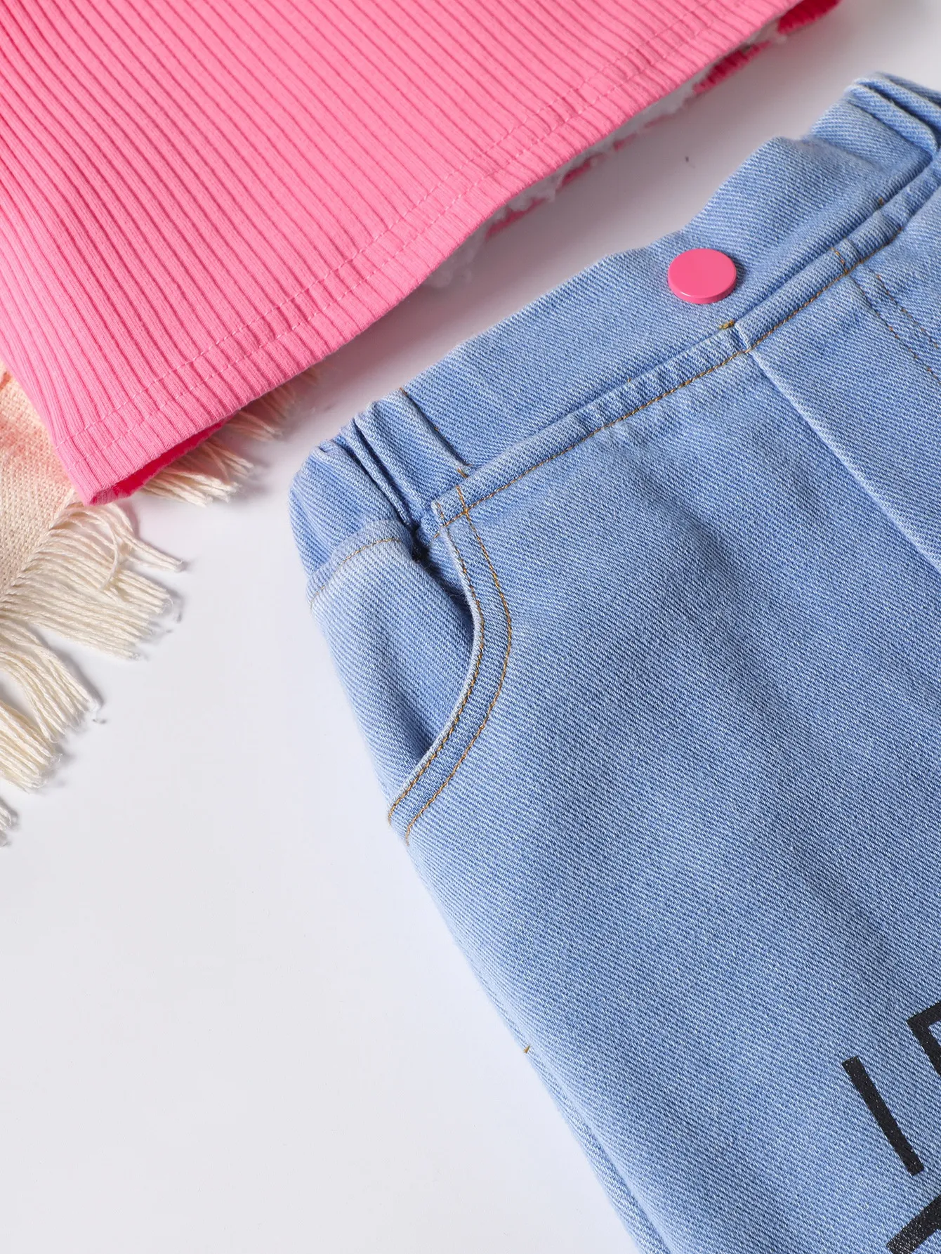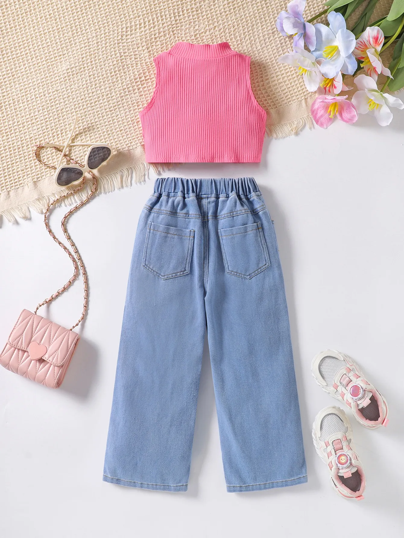 Perfect for playdates, outings, or family gatherings, this sleeveless vest is both fashionable and functional, adding a trendy yet practical piece to any girl’s wardrobe.