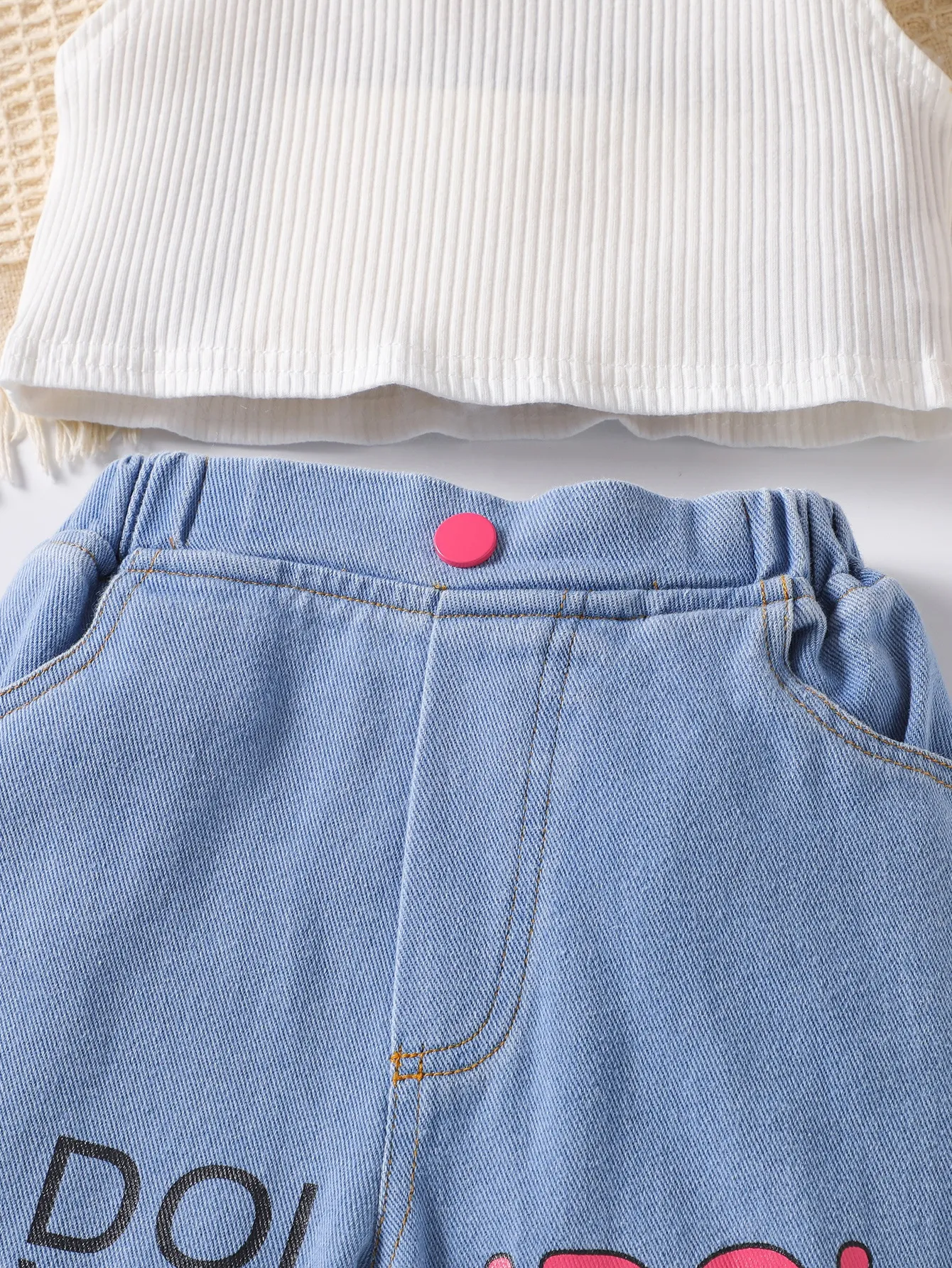 Crafted from soft, breathable fabric, this sleeveless vest ensures all-day comfort while allowing freedom of movement for active girls. The bold letter design adds a touch of personality and modern style, making it easy to pair with skirts, shorts, trousers, or leggings. Lightweight and durable, it is easy to wash and maintain, ideal for everyday wear.