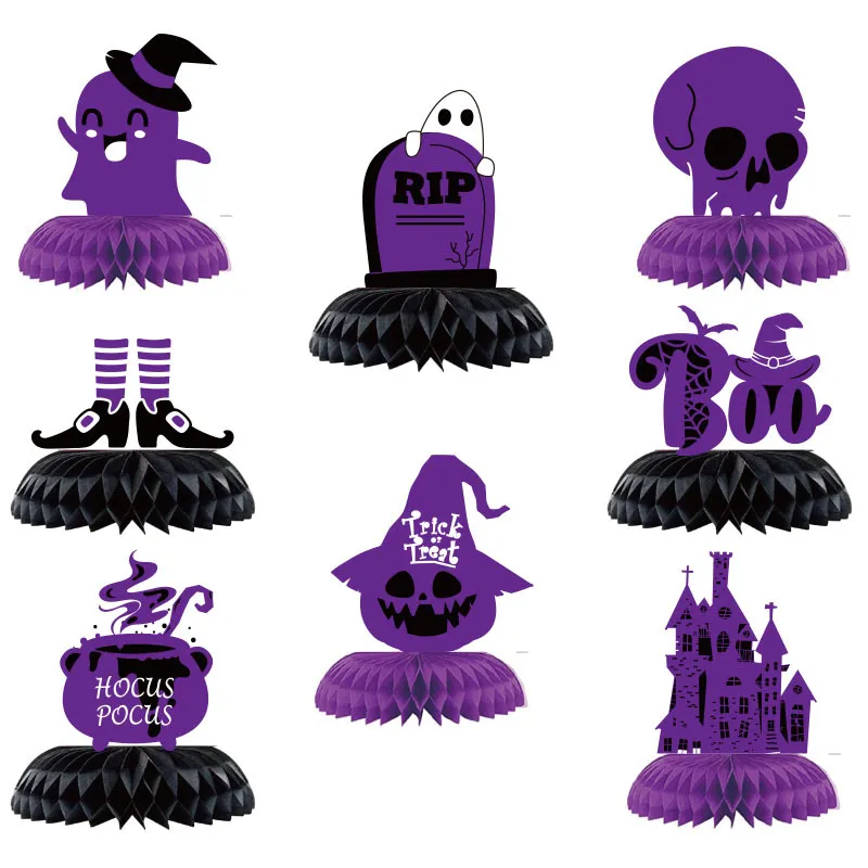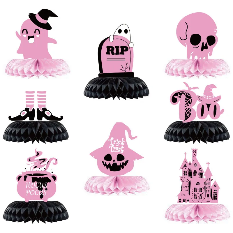 Size: 8 pink Halloween honeycomb sets, 8 purple Halloween honeycomb sets, 8 green Halloween honeycomb sets, 8 red Halloween honeycomb sets
