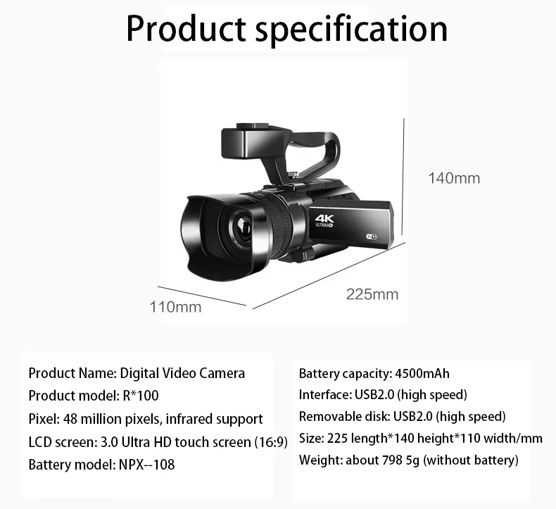 The New Handheld High-Definition Digital Video Camera is a professional-grade camera designed for both personal and professional use. With its 4K video recording capabilities, this camera captures stunning high-definition footage with remarkable detail, making it the perfect choice for conference recording, vlogging, or shooting short videos. Whether you are recording content for your business, creating educational materials, or capturing important events, this 4K camera recorder provides high-quality video that is sure to impress.