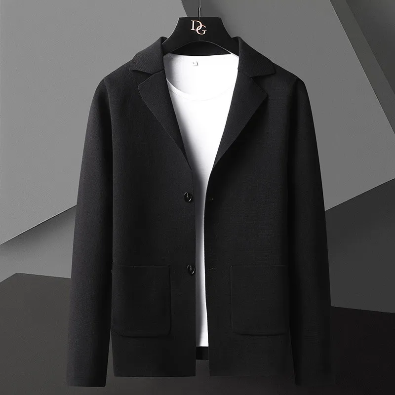 New Knitted Cardigan Men's Sweater Slim Fit Turn-down Collar Coat