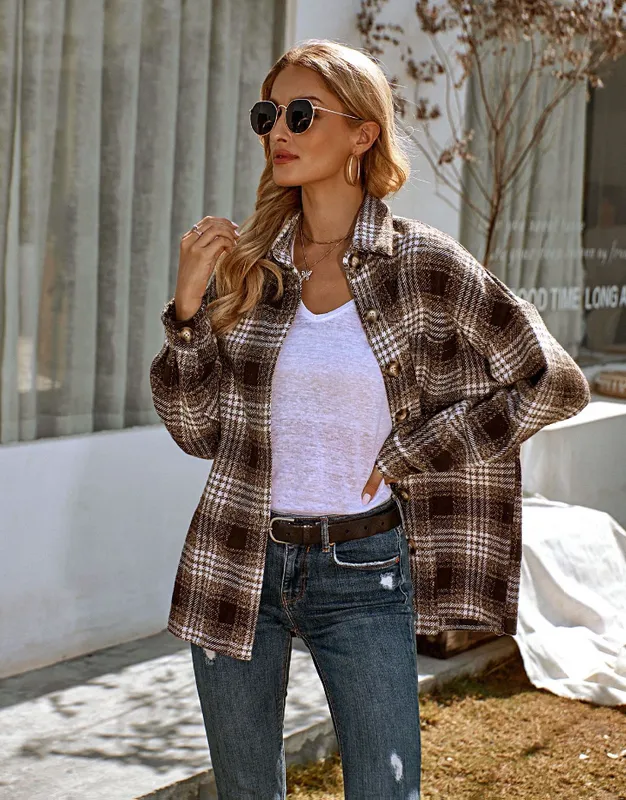 New Lapel Loose Casual Shirt Large Plaid Jacket