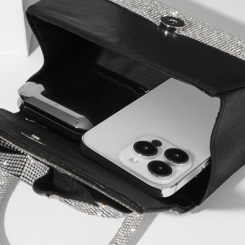 The New Light Luxury Full Diamond Bow Handbag is designed to be a perfect balance of luxury and practicality. Its compact size makes it easy to carry, while still providing enough space for your essential items such as your phone, makeup, and wallet. The light luxury design ensures that you have a standout accessory without feeling overwhelmed by bulky or heavy bags.