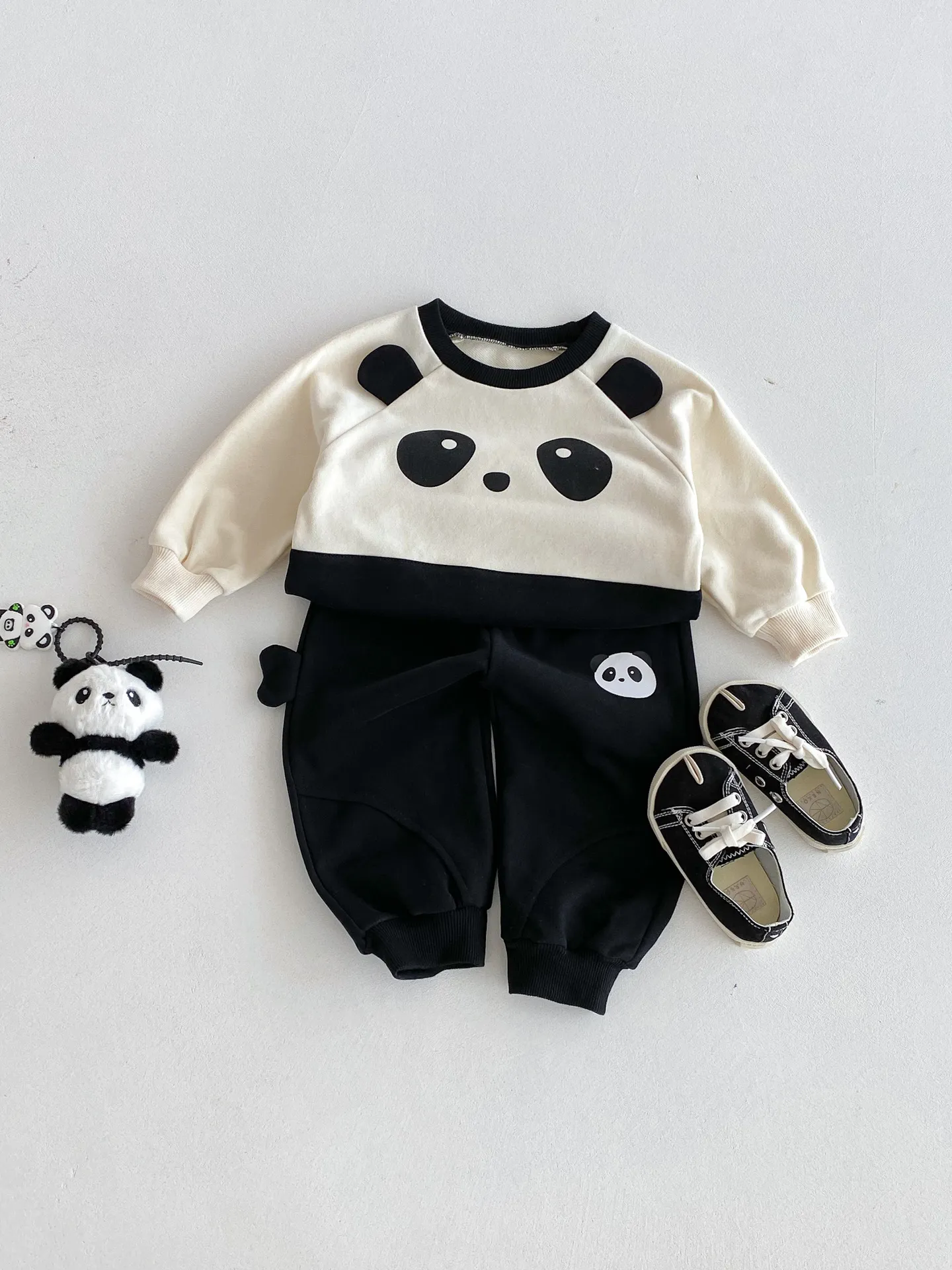 New Long Sleeve Round Neck Western Style Panda Sweater Pants Suit