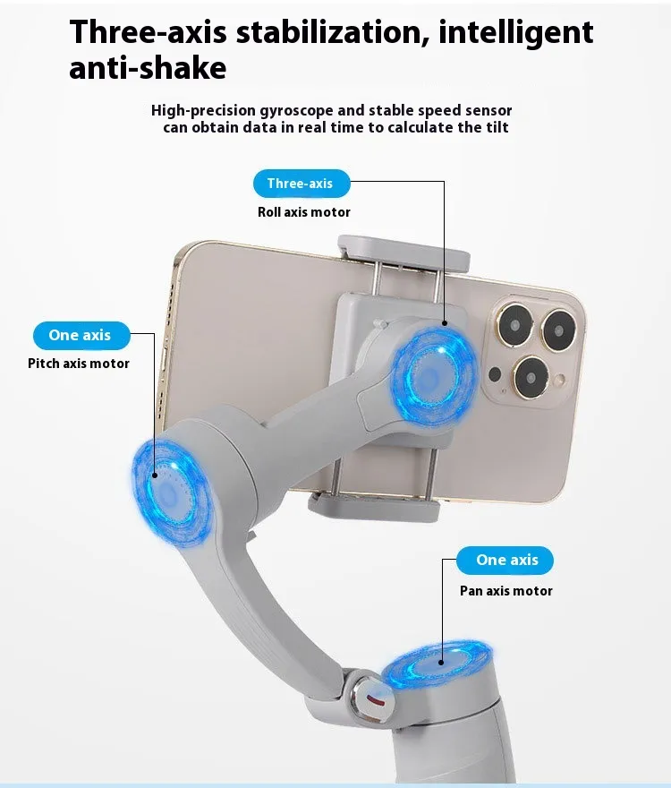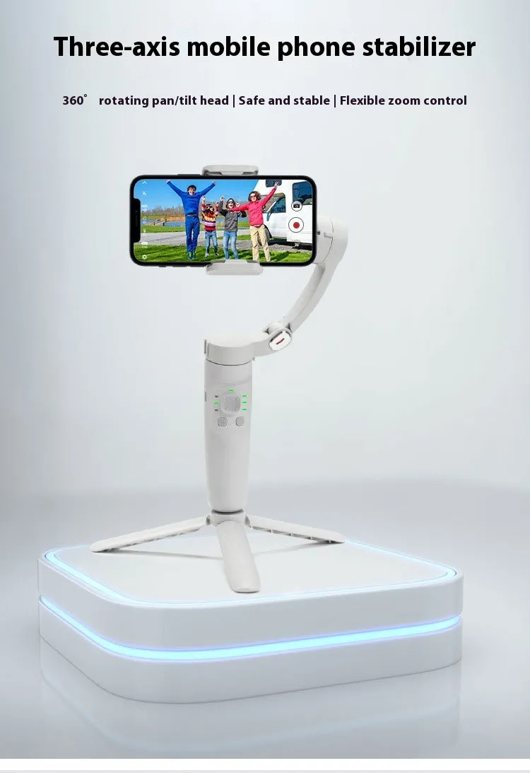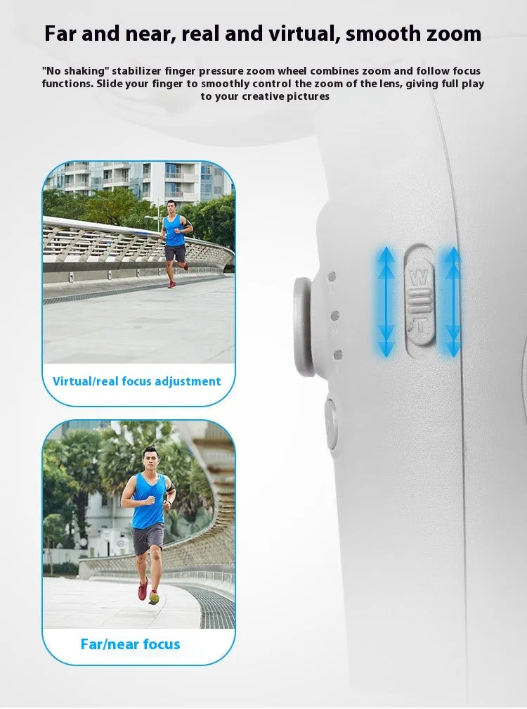 Equipped with a foldable tripod base and ergonomic grip, the stabilizer allows for hands-free shooting and smooth panning movements, eliminating shaky footage. Its universal phone holder fits most smartphones securely, making it easy to switch between portrait and landscape modes.