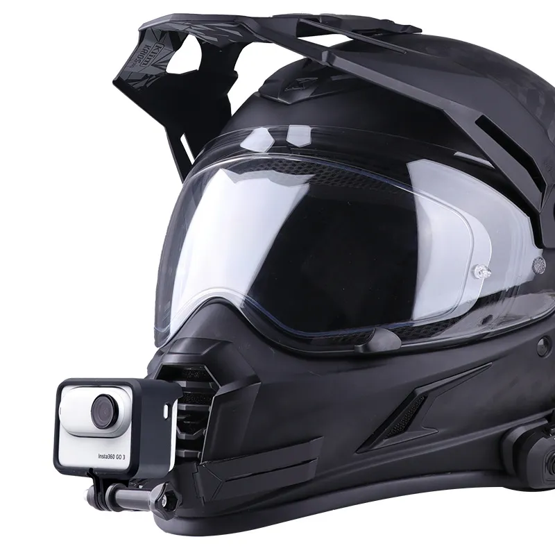 Unlike traditional helmet mounts, this bracket is integrated into the chin area of the helmet, providing a lower and more centered mounting position. This helps achieve a clearer and more stable perspective with a unique first-person view that captures the road ahead, your handlebars, and even the road surface beneath you. Perfect for motorcycle riders who want to share their experiences from an engaging and realistic angle.