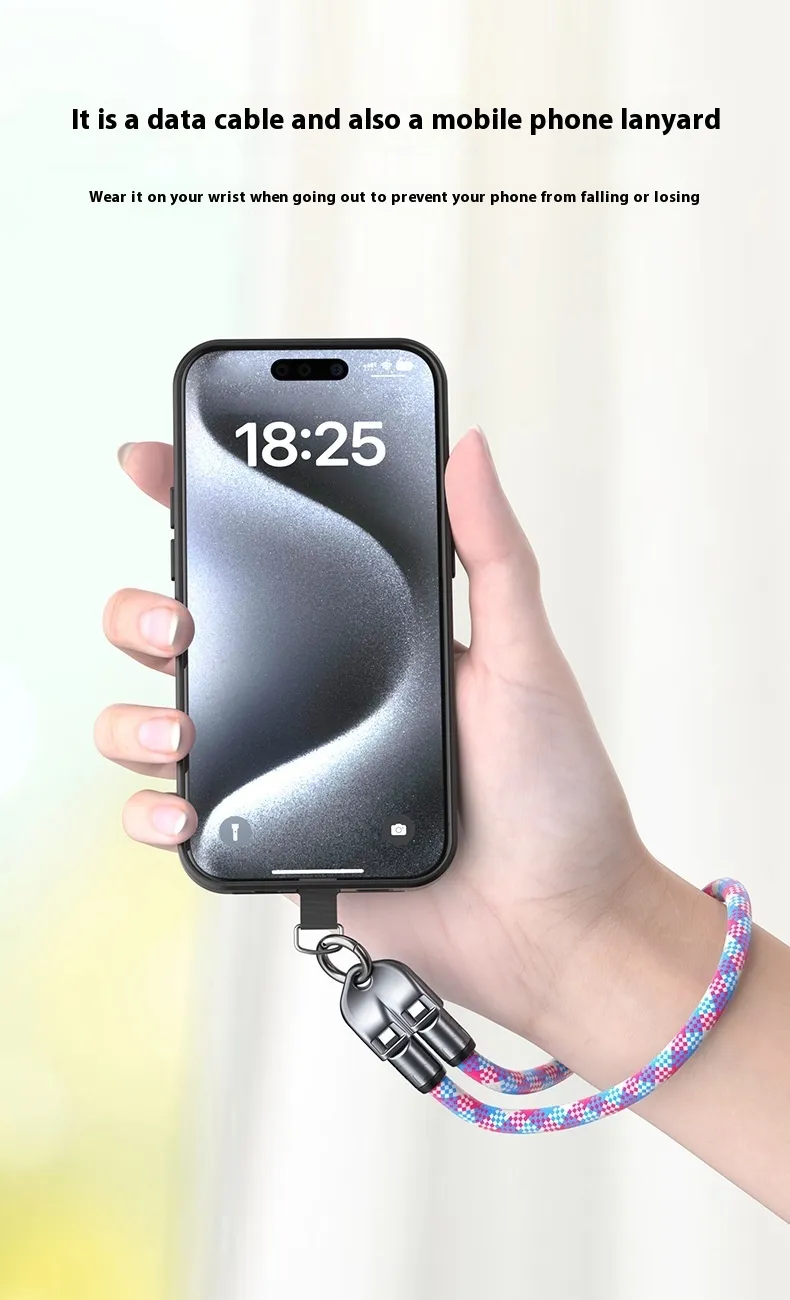 The New Multi-functional Mobile Phone Two-in-one Lanyard Data Cable is more than just a charging cable — it’s a wearable lanyard and fast charging data cable in one. Designed for convenience, this smart accessory ensures you’ll never forget your charging cable again.