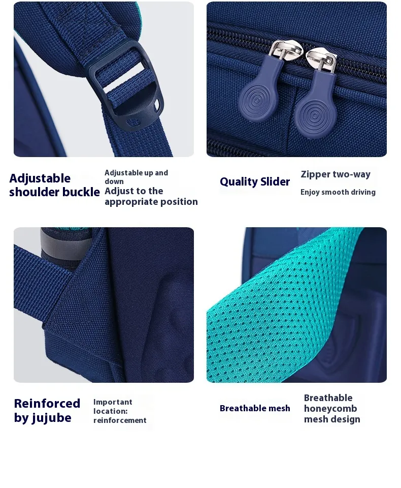 Function: breathable, waterproof, ultra-light, antibacterial, wear-resistant, burden-reducing, spine protection, night safety reflective