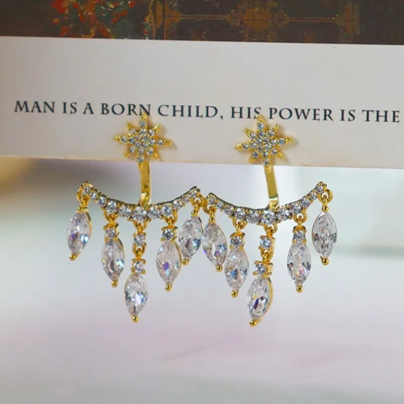 New Retro Eight Awn Star Zircon Earrings Fashion Pendant Stud Earrings Women's High Jewelry Party Gift