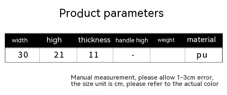 DescriptionMaterialLeatherProduct AttributesOrdinaryPackage Size320*230*120(1mm)