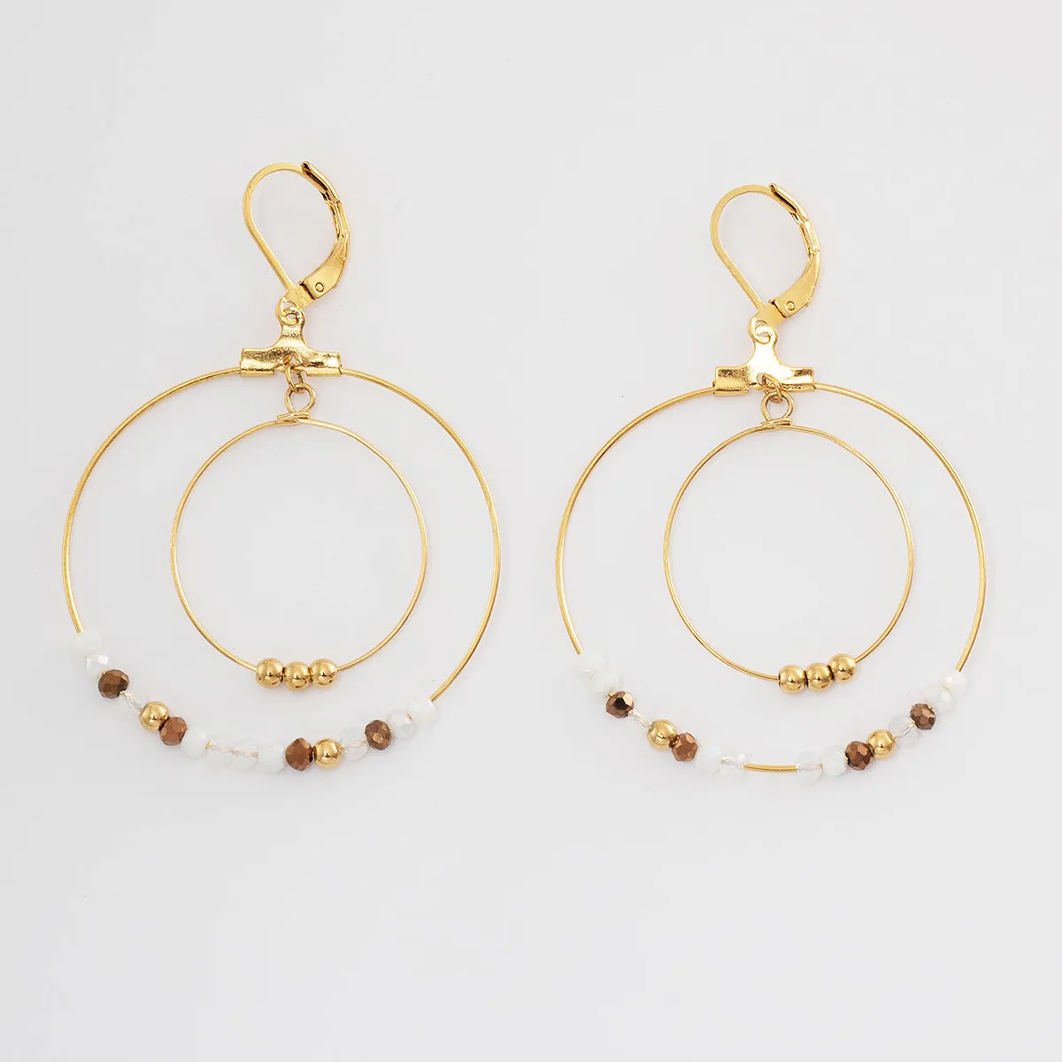The ring design adds a touch of modernity and complements the natural stone pendants, creating a balanced, elegant look that is both fashionable and timeless. The minimalist approach to design ensures that the earrings can be paired with a wide variety of outfits, from casual attire to evening wear.