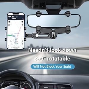 - 【Never Block the line of sight】Car phone mount designed for car rearview mirror. the adjustable phone holder for car can be levels with eye viewing, keep your eyes on the road, No longer looked down at the phone and never block your sight, make sure your driving more safe and comfortable.