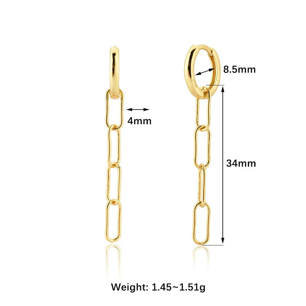 New S925 Sterling Silver Rectangular Chain Long Chain Earrings
