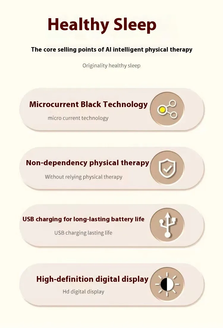 Say goodbye to sleepless nights and persistent anxiety with the New Smart Hand-held Sleeping Aid Instrument. This innovative device leverages advanced micro-current technology to help improve sleep quality, relieve anxiety, and provide soothing massages right at your fingertips. Compact and user-friendly, it's the perfect companion for achieving better sleep and enhanced well-being anytime, anywhere.