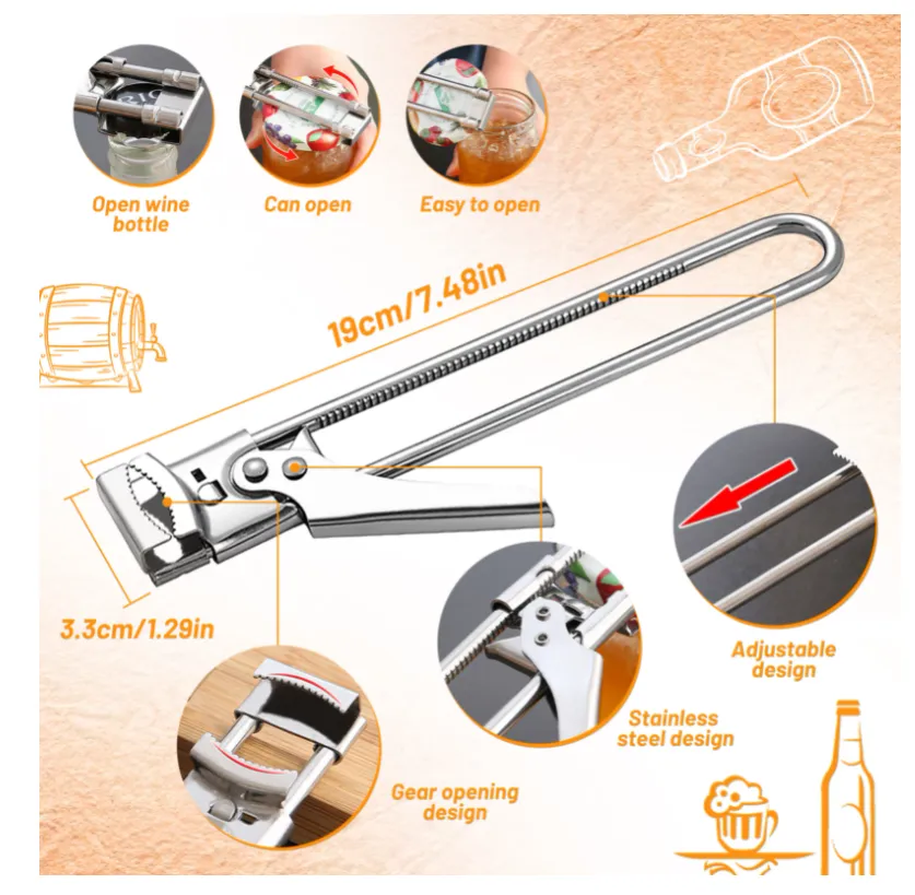 juice bottles, soft drinks, or household jars, this opener will serve you well for years to come.