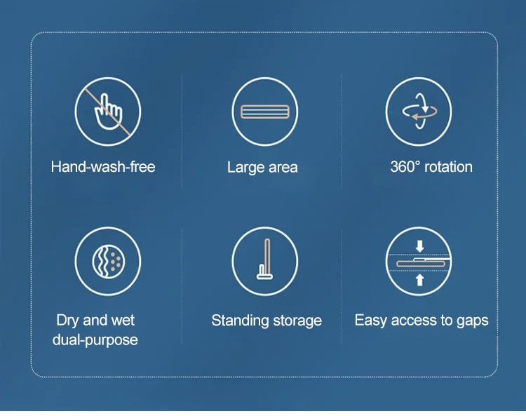 There is a flexible mop head that can rotate 360°. The mop can go in and out of the bottom of the bed, the bottom of the sofa and other places that are not easy to clean, avoid dust accumulation, leave no dead corners, clean your house in all directions. There is a hook at the top of the handle, which can be hung vertically on the wall when the mop is not in use. It does not occupy too much space and is very convenient for storage.
