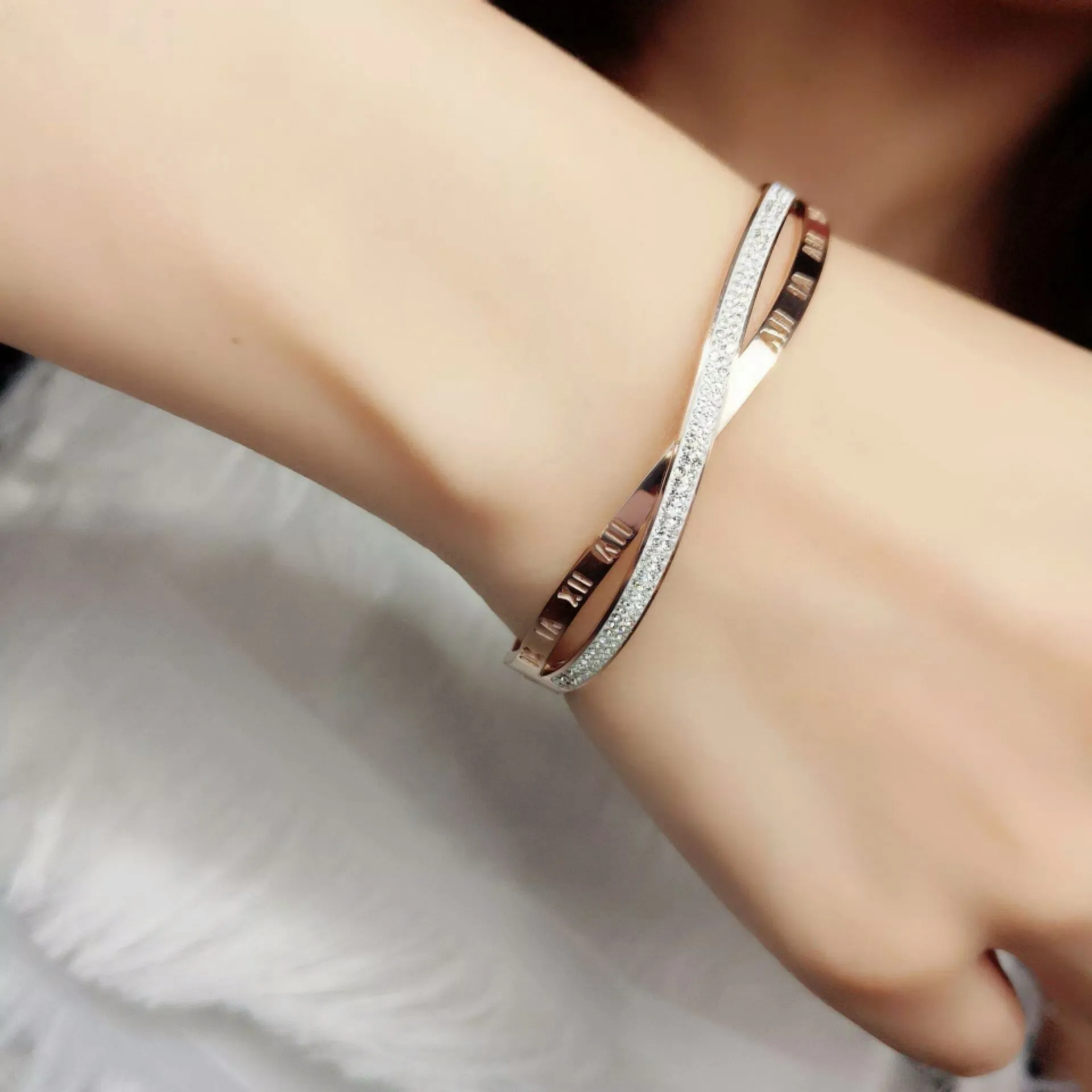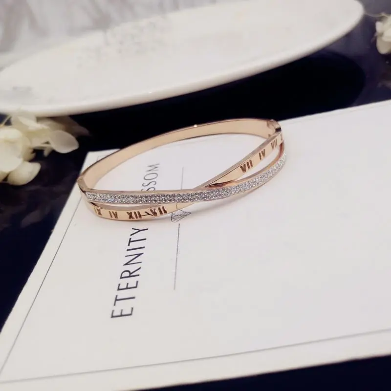New Style Titanium Steel Exquisite Seal Cutting Roman Pattern Inlaid Diamond Rose Gold Decorative Accessories Fashion Personality Bracelet