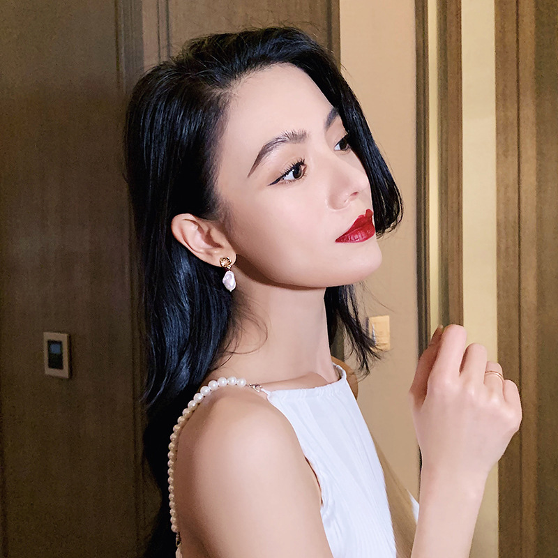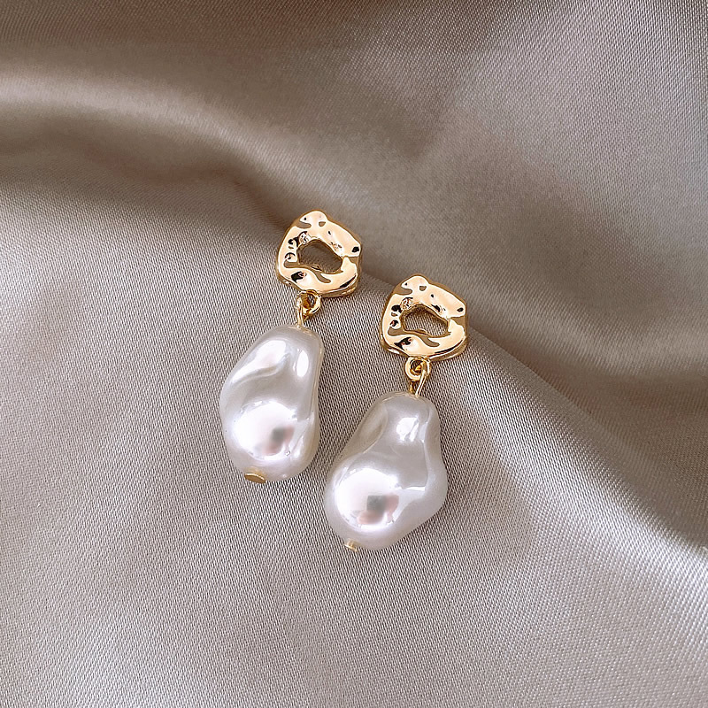 New Trendy Elegant Pendant 925 Silver Needle French Baroque Artificial Pearl Earrings Women
