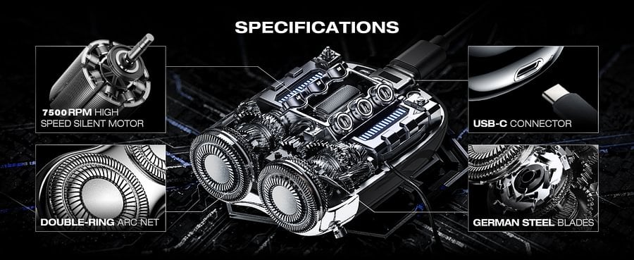 Sharp stainless steel turbo whirl blade, specializing in hard beard, 0.1mm thin stainless steel foil, double ring 3D knife net, increase shaving volume, floating arc surface smooth and remove hair from your skin.