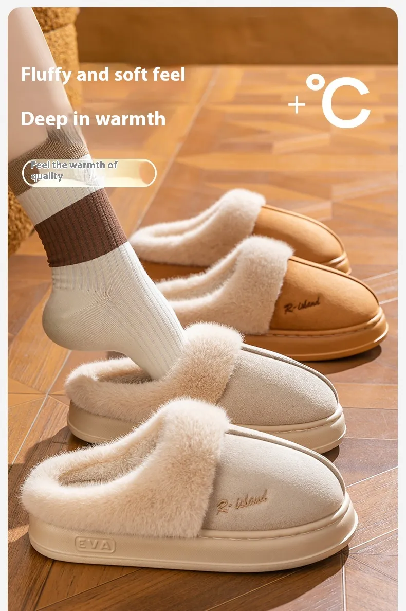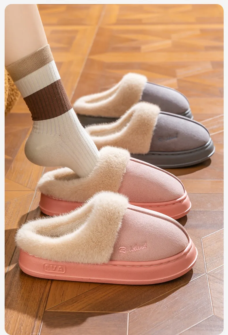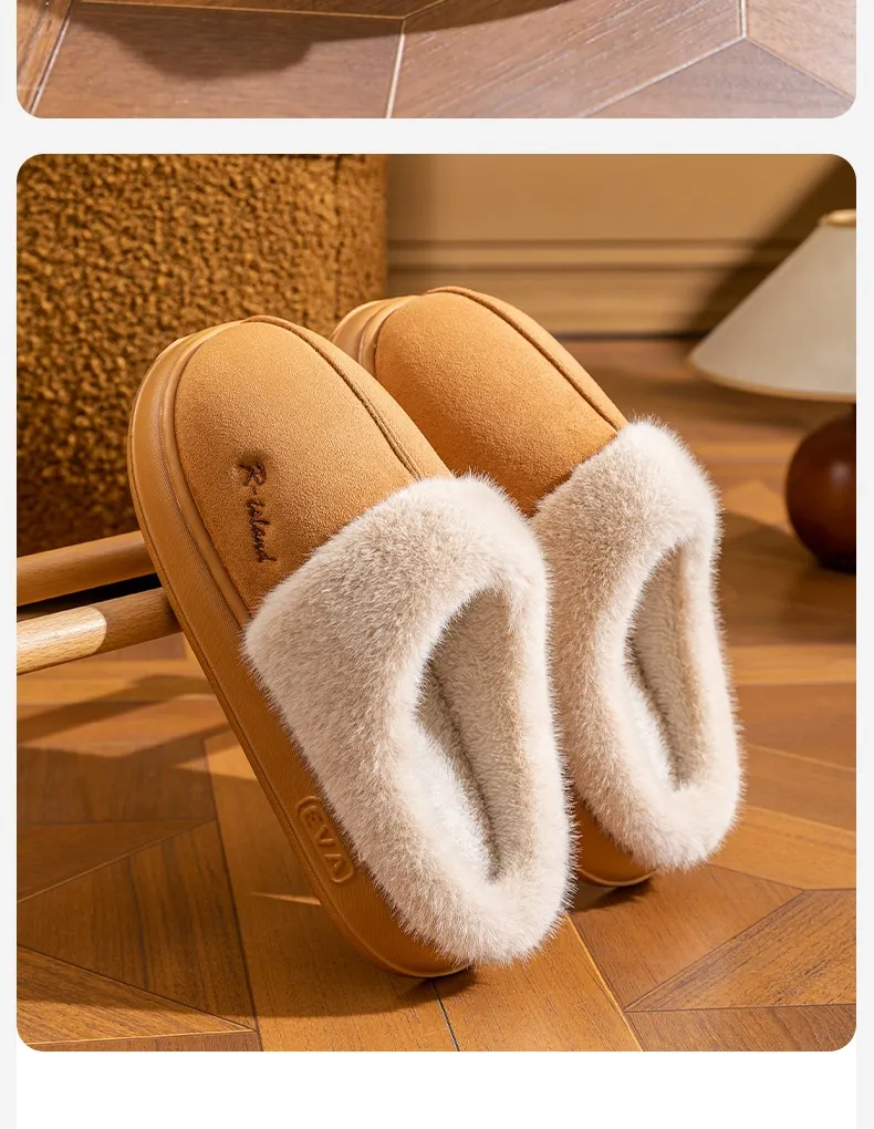 New Winter Cosy Warm Couple Style Concise Fluffy Slippers Women Men Non-slip Soft Slides Indoor Mule Ladies' Home Cotton Shoes