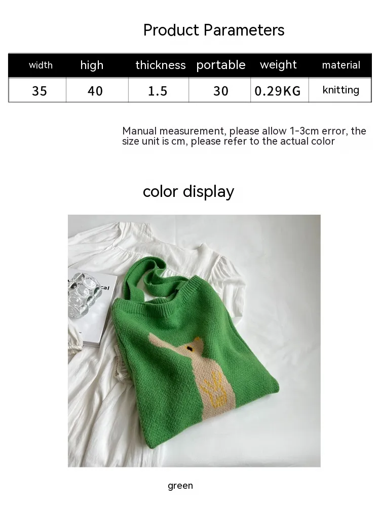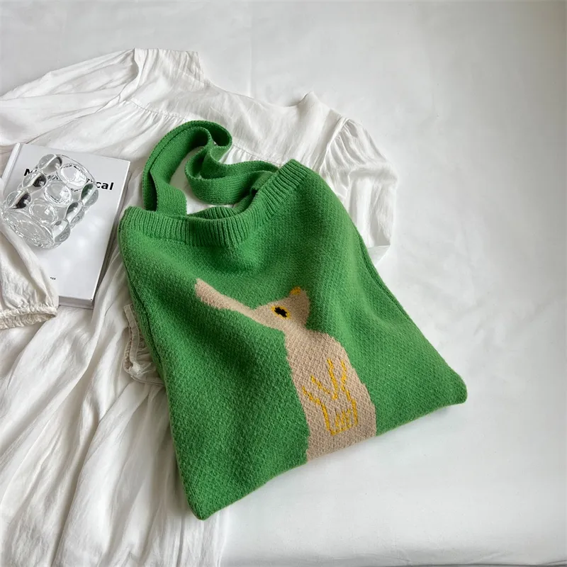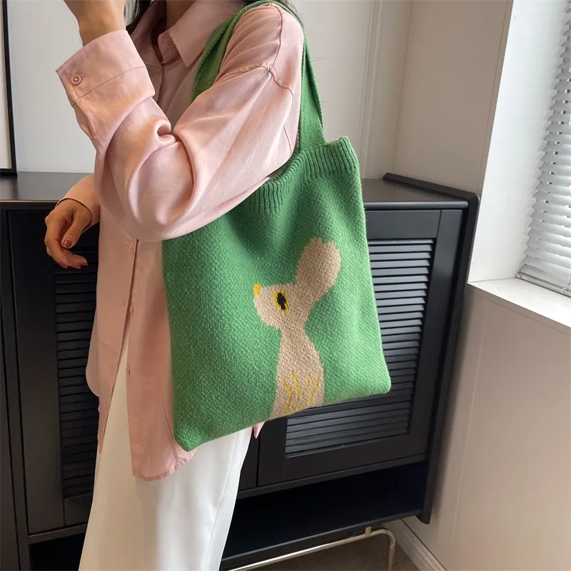 New Wool Bag Women's Large Capacity Knitted Handbag Cute Rabbit Commuter Shoulder Bag